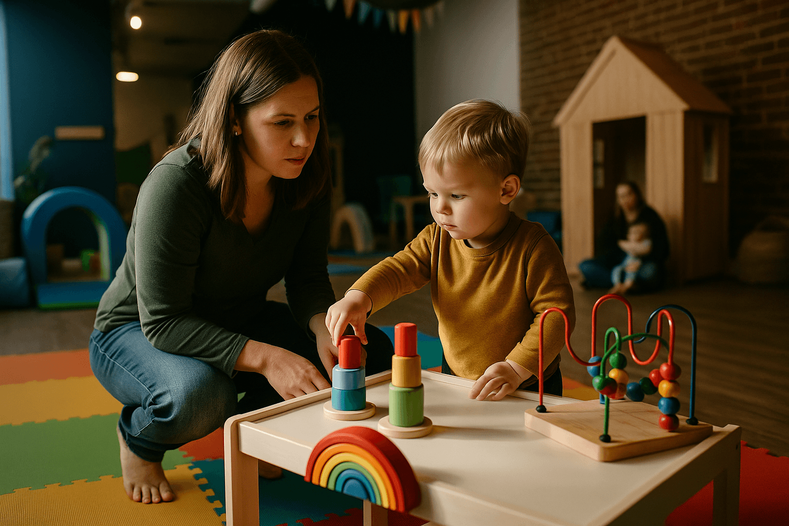 The facility includes a small indoor playground and multiple play stations such as a play kitchen and toy shopping carts. A calming fish tank has been incorporated specifically with autistic children in mind, and the layout is designed around safety and accessibility. The café also contains a parent area where caregivers can sit while children play, and the business is offering birthday party rentals. Smith plans to expand with programming for older children and to build partnerships with local groups.